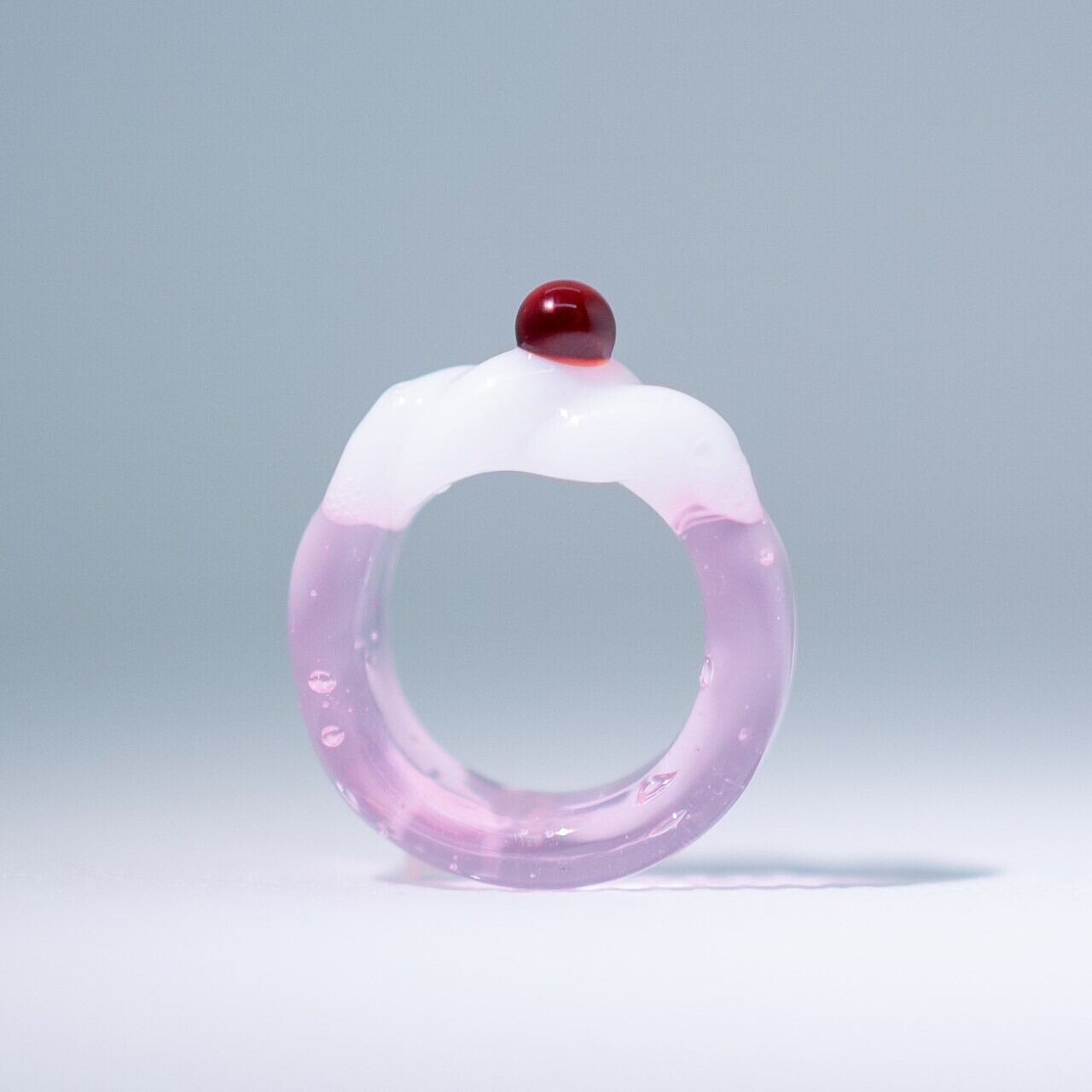 シュワシュワソーダにたっぷりクリーム、ちょこんと乗ったチェリー、喫茶店のクリームソーダの可愛らしさをそのままリングにとじこめました!
