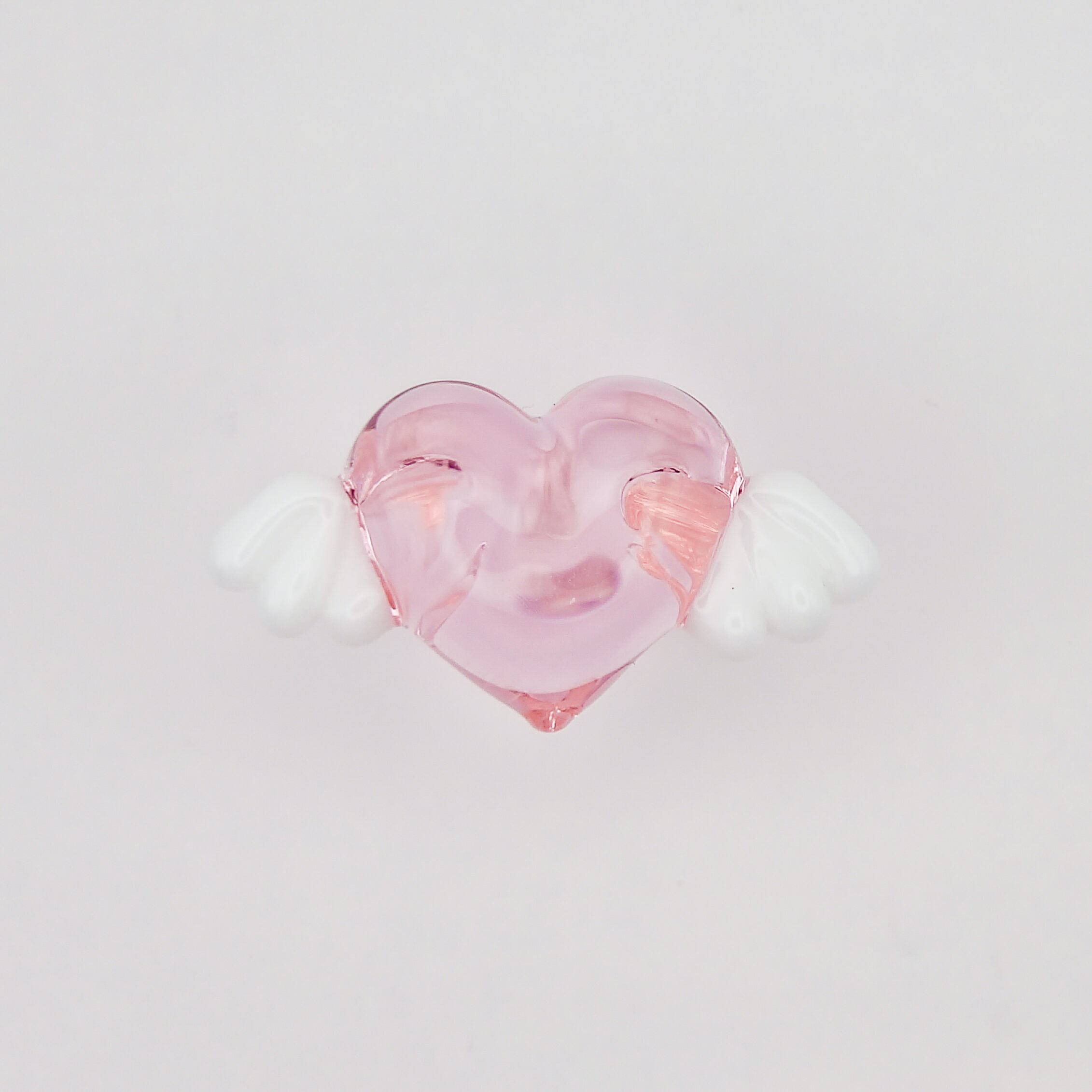 大きなハートに天使の羽がついたガラスのリングです。